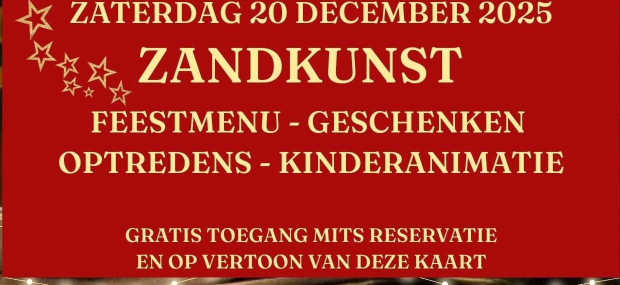 Zandkunst, feestmenu, optredens, kinderanimatie, geschenken en tombola